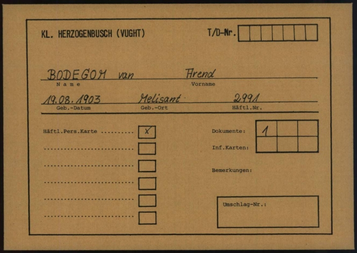 Aren van Bodegom wordt op 19 augustus 1903 in Melissant geboren. Op 21-jarige leeftijd verhuist hij in september 1924 van Goeree-Overflakkee naar Loosduinen, Den Haag. Hier trouwt hij op 14 mei 1930 met Suzanna Maria Schraag, met wie hij uiteindelijk acht kinderen krijgt.