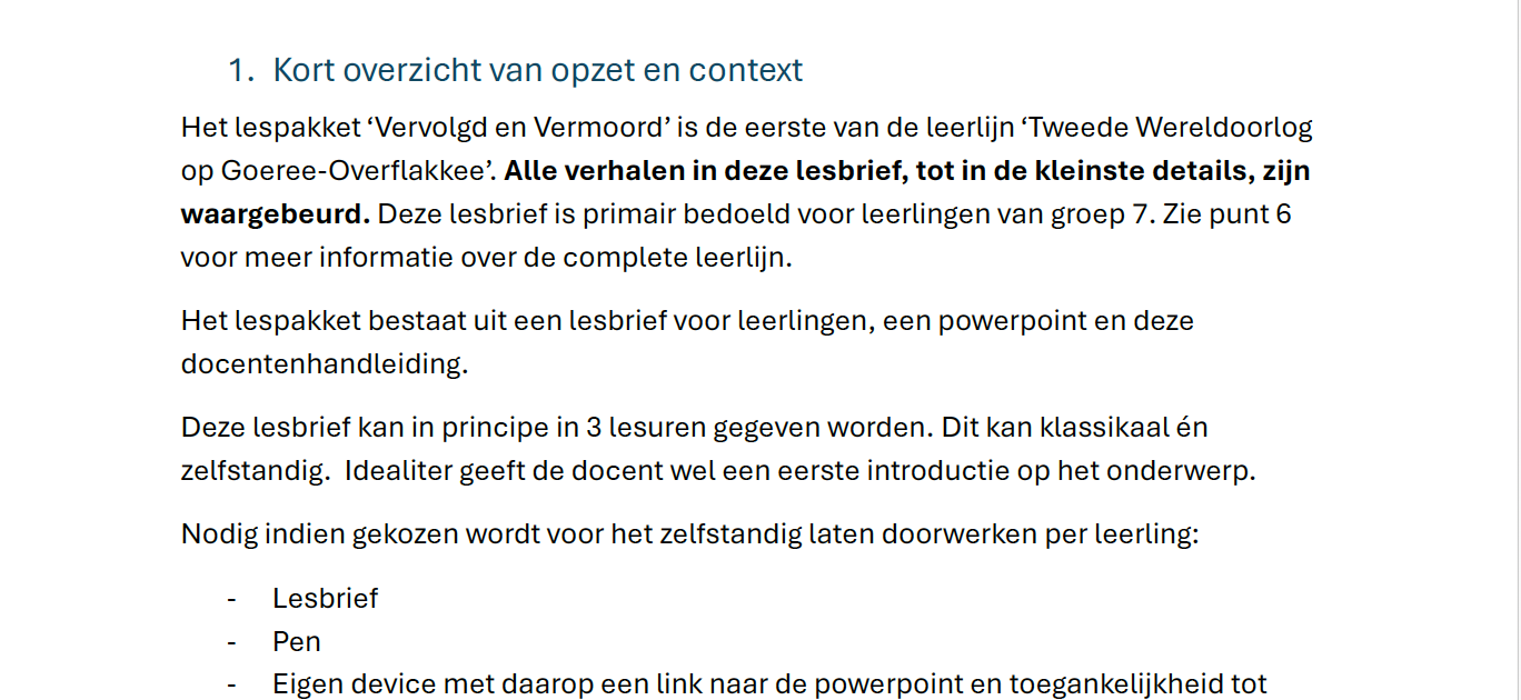 Stichting WO2GO heeft ook als missie om de gebeurtenissen uit de Tweede Wereldoorlog zo dichtbij mogelijk te brengen – ook bij leerlingen. In 2025 is daarom een lespakket ontwikkeld waarbij het verhaal van de lokale Jodenvervolging in de landelijke contextwordt verteld. Wat gebeurde er met Sebilla Gazan en Leofried Durlacher uit Dirksland, met Salomon Gazan uit Middelharnis en hoe reageerde de Flakkeese bevolking daarop? Het lespakket bestaat uit een lesbrief, een powerpoint en een docentenhandleiding. Gemeente Goeree-Overflakkee heeft via Cultuureducatie met Kwaliteit dit lespakket gratis beschikbaar gesteld aan ruim 500 basisschoolleerlingen. Heeft u ook interesse om een volgend jaar aan te haken? Laat het weten via het contactformulier.